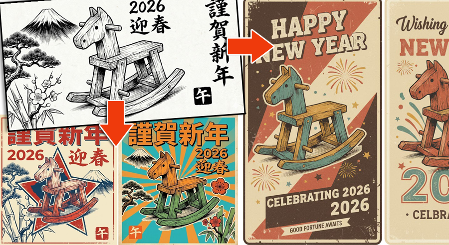 手始めに今年の「年賀状」をAIアシストを添えて作成してみました。