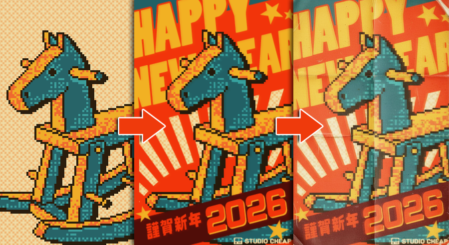 いつもは真ん中のデザインで完成ですが、せっかくのAI練習なのでレトロチラシ風に仕上げてもらいました。
