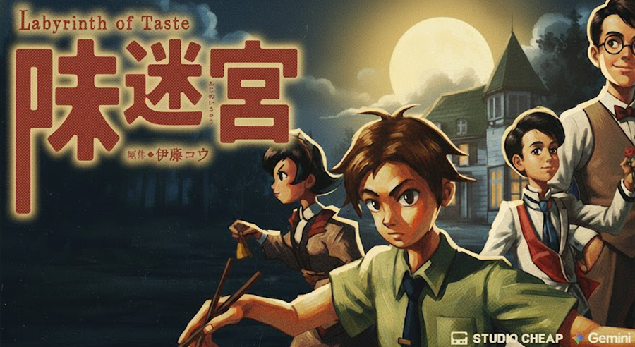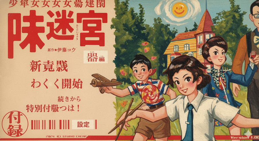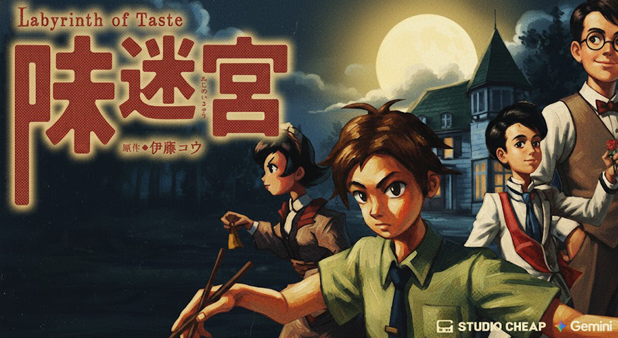 解説: 「Gouache painting(ガッシュ画)」と「Thick brushwork(厚い筆致)」を指定することで、当時の筆の質感を出し、「Warm vintage color palette」で昭和特有の温かい色調を表現します。 - 劇画・写実寄りの「冒険・ロマン」スタイル
