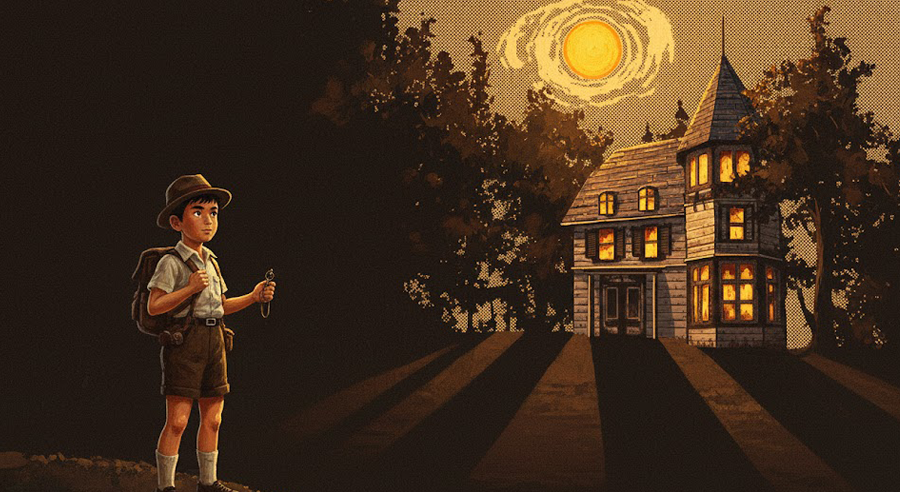 Prompt: > Vintage Japanese adventure magazine art style, 1960s, a brave boy looking at the horizon, realistic yet stylized oil painting, rich textures, halftone dot patterns in the background, bold lighting, masterpiece of retro illustration.