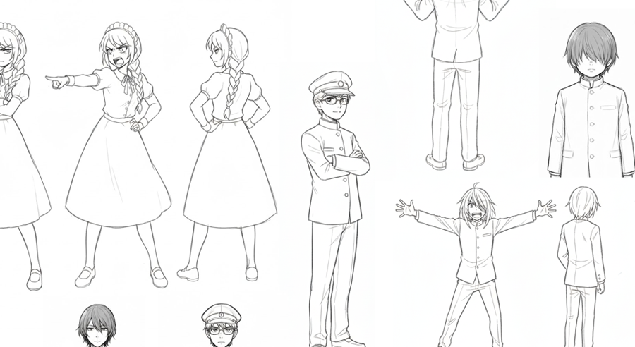 AIアシストによる、主要キャラクター3人の立ち絵を作成していました。