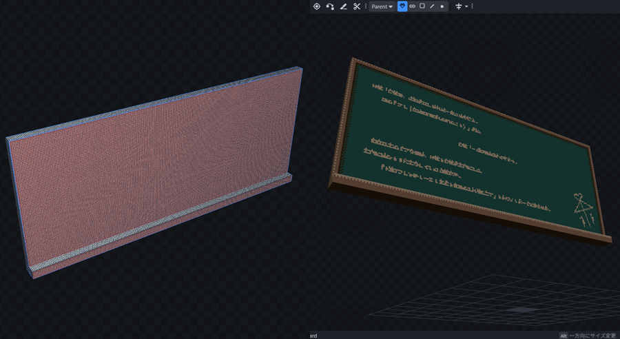 詳細に作りこめたであろう教卓。四角だけでデータサイズ軽量化!?