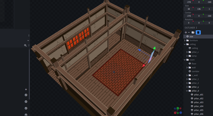 サイズ感が決まったところで、部屋を作って家具を配置していきます。