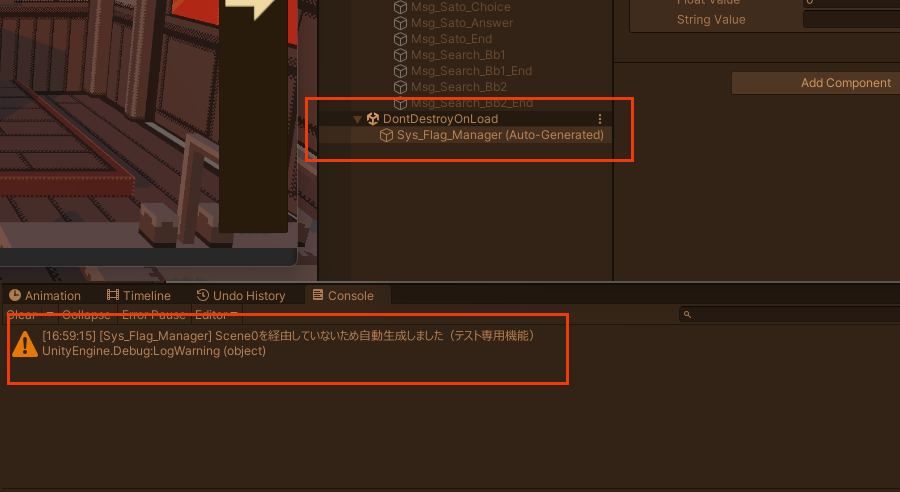「テスト再生中にだけ、そのSceneに自動で「Flag_Manager」スクリプトを生成する」というものでした。