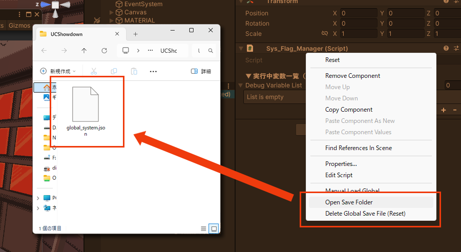 上記「Sys_Flag_Manager(Auto-Generated)」のインスペクターに随時表示される仕組みになっています。