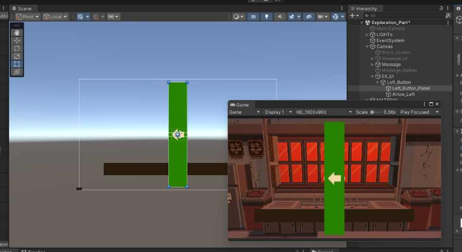 テスト画面(Game)を見ながらの操作となります。(メイン画面カメラとUIカメラを1つにする方法もあります。)