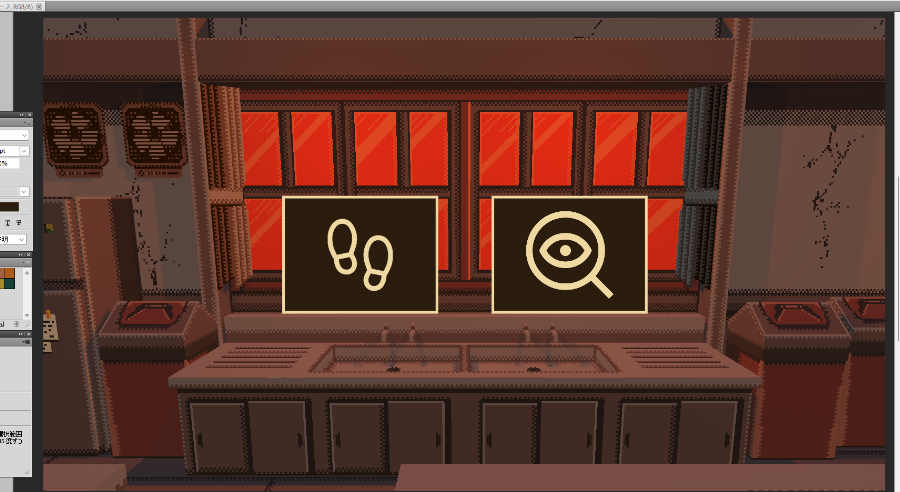 選択型アドベンチャーらしく「移動ボタン」「探索ボタン」を選んだ後に、各行動ターンに移行と考えていました。