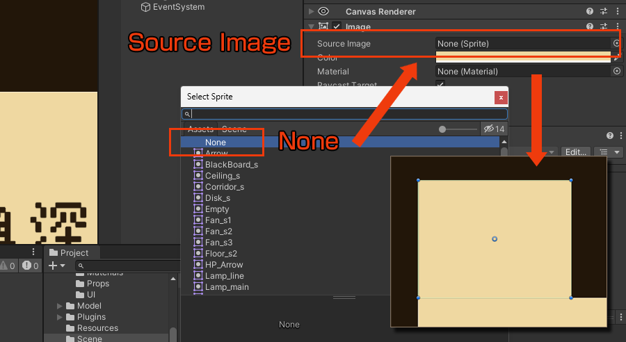 UIイメージの角丸・隅間を消す【Unity】 unity技術 2026.02.25 「Canvas」内の「Image」や「Panel」「Button」などのUIオブジェクトを作成すると角が丸くなり、若干の隙間ができる設定になっています。この設定をなくす方法です。 「Image」内の「Source Image」を「None」にすることで、すべて解除される仕組みになっています。ちなみにこの方法はあまりよろしくない?みたいなので、急がない場合は、小さいサイズでかまわないので、べた塗りスプライトを作り「Source Image」に指定するのが良いみたいです。
