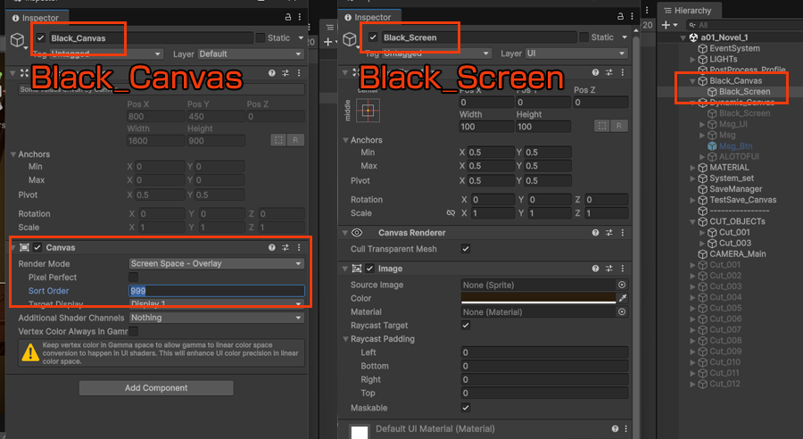 - Black_CanvasをHierarchyのルートに置く