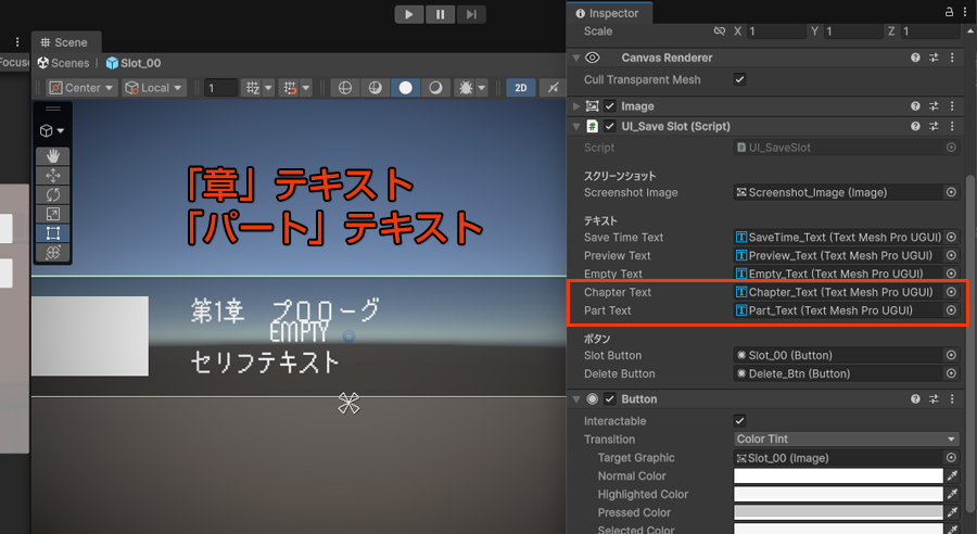 ├ ChapterText ← TextMeshProUGUIで新規作成