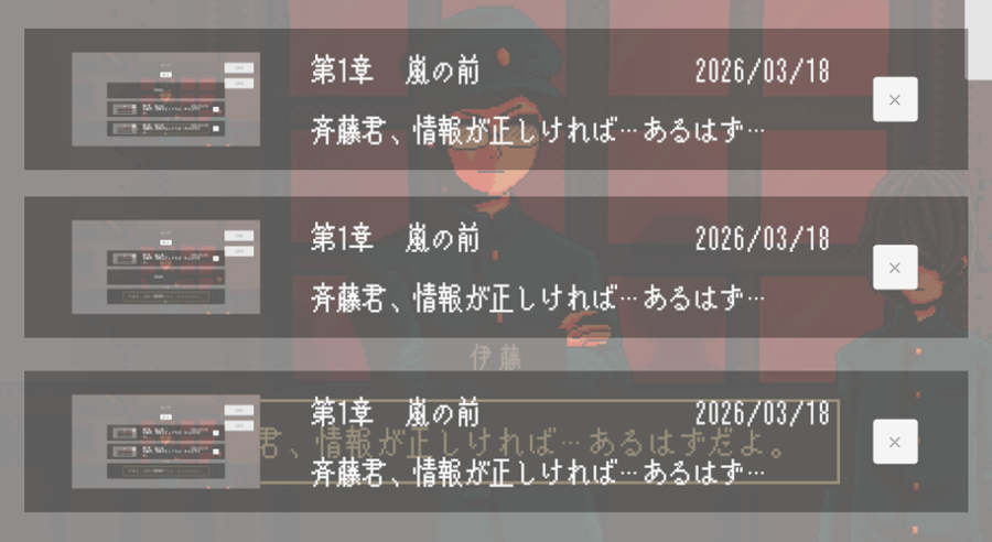 ・セーブスロットを押したら即閉じではなく、画面は開いたままに。