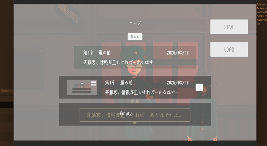 とにかく、一番の懸念点であった「セーブ・ロード」が実装できたのは大きな進捗です。