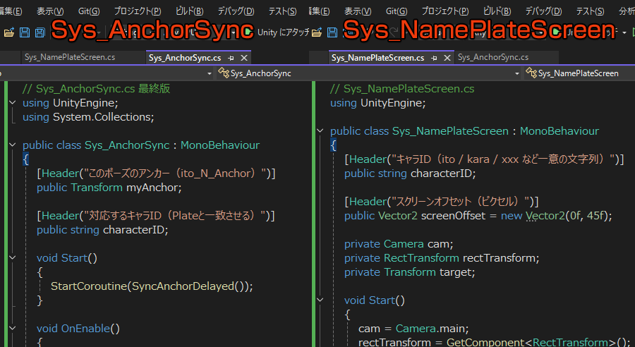 UICanvasの名前プレートに Sys_NamePlateScreen をアタッチし、