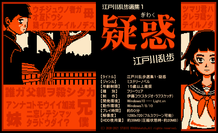 ゲーム制作試作版として、江戸川乱歩の『少年探偵団・魔法人形』を原作として使わせていただきました。
