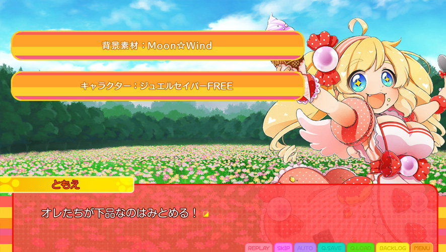 【Lvスタイル基】は、ちょっとした演出スクリプトなども使わずに、フリーの各素材をそのまま使用して作ったサンプルゲームにしました。そのため、すぐにでもヴィジュアルノベルゲームを完成させたい方は、ご自身のシナリオ・イラスト・音楽などを取り替えるだけで完成できるような感じにしています。
