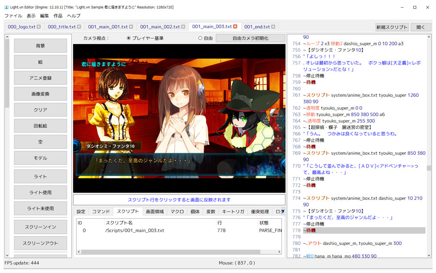 ヴィジュアルノベル制作ツール『Light.vn(ライト・ヴィエン)』にて、制作の参考・改造などのために、